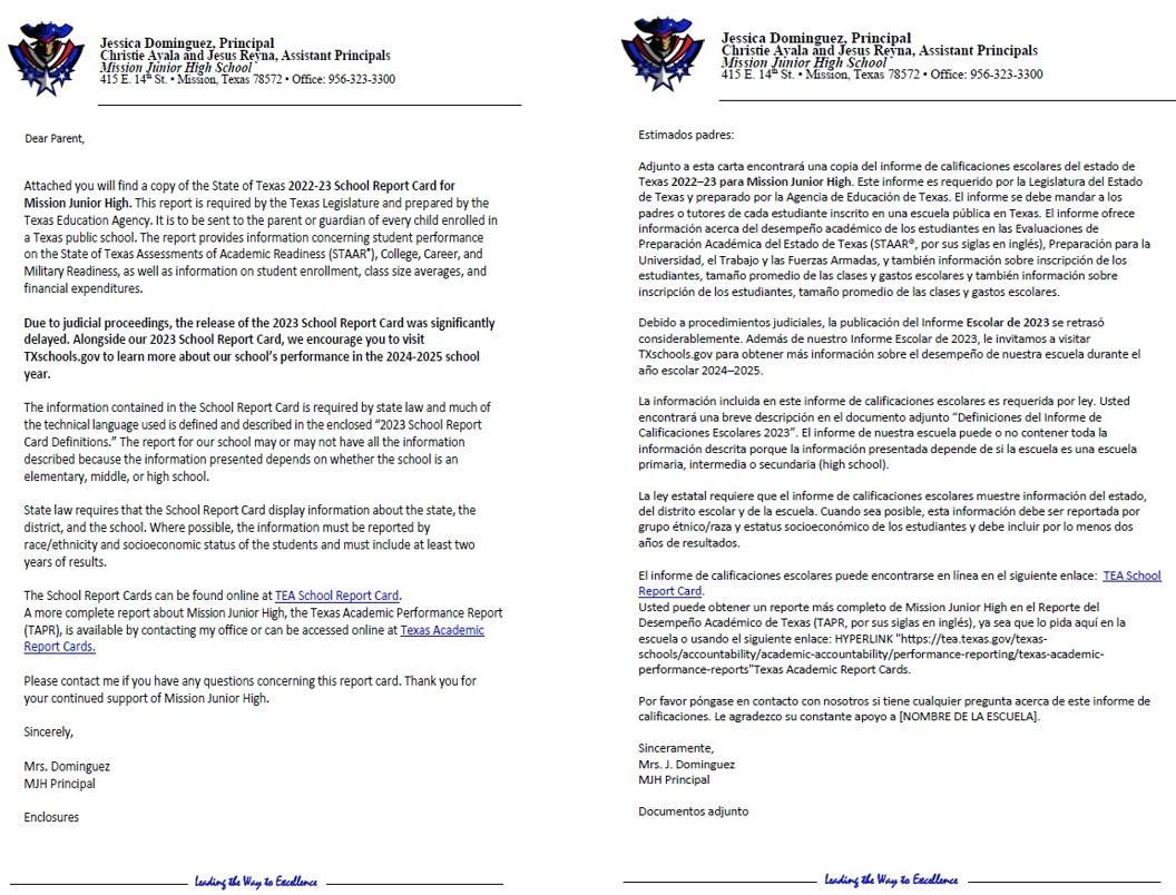 Parent Notice School Report Card 2023